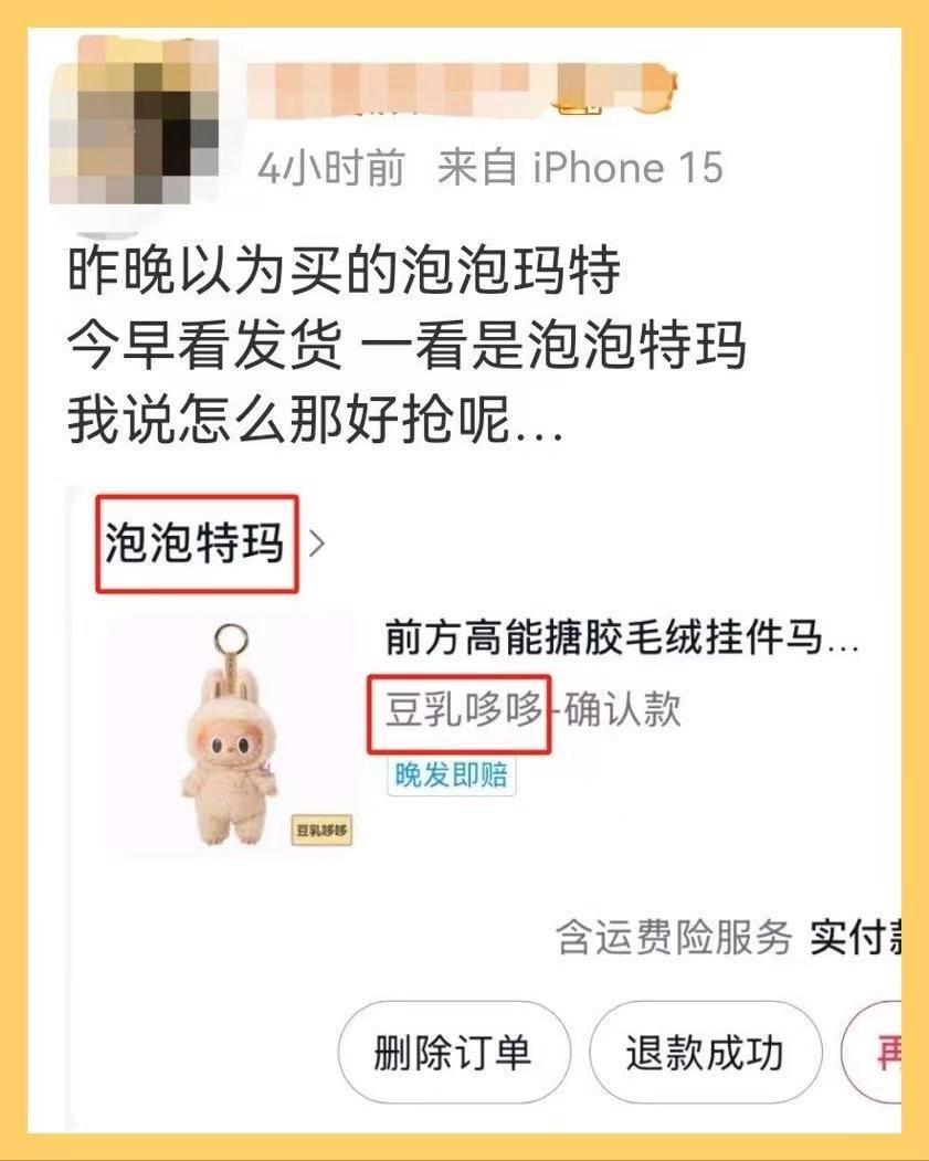 起因是某购物平台惊现“泡泡特玛”盲盒,网友下单后才发现,产品与正版仅“玛特”二字倒了个顺序😂。